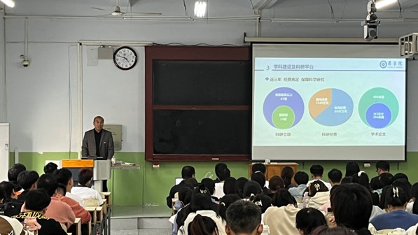 在本次宣讲会上,纪宝玉教授以药学院学院情况介绍为切入点,分别从学校地址、历史、学院发展历程和师资队伍等方面,为同学们详细介绍了中医药大学药学院的基本情况,以多元化的形式展现出药学院的办学理念及办学特色。方晓艳教授和付钰教授分别介绍了河南中医药大学临床中药/药理研究方向和中药资源与鉴定研究方向研究领和硕士生招生概况。毕业于河南理工大学在读研究生做了考研和读研心得体会。会后,宣讲老师对同学们考研疑问进行了详细答疑。