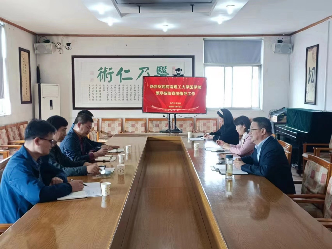 会议伊始,邵磊院长对我院相关领导的到来表示热烈欢迎,并就焦作市中医院在专业学科优势、科室设置、人才队伍建设、教学管理模式等方面的情况进行了介绍。张向锋书记向焦作市中医院的与会人员介绍我院的发展历程、办学历史、人才培养方案、实习基地遴选要求等基本情况。随后双方就临床教学和科研合作等方面进行了深入的交流探讨,达成了初步合作意向。