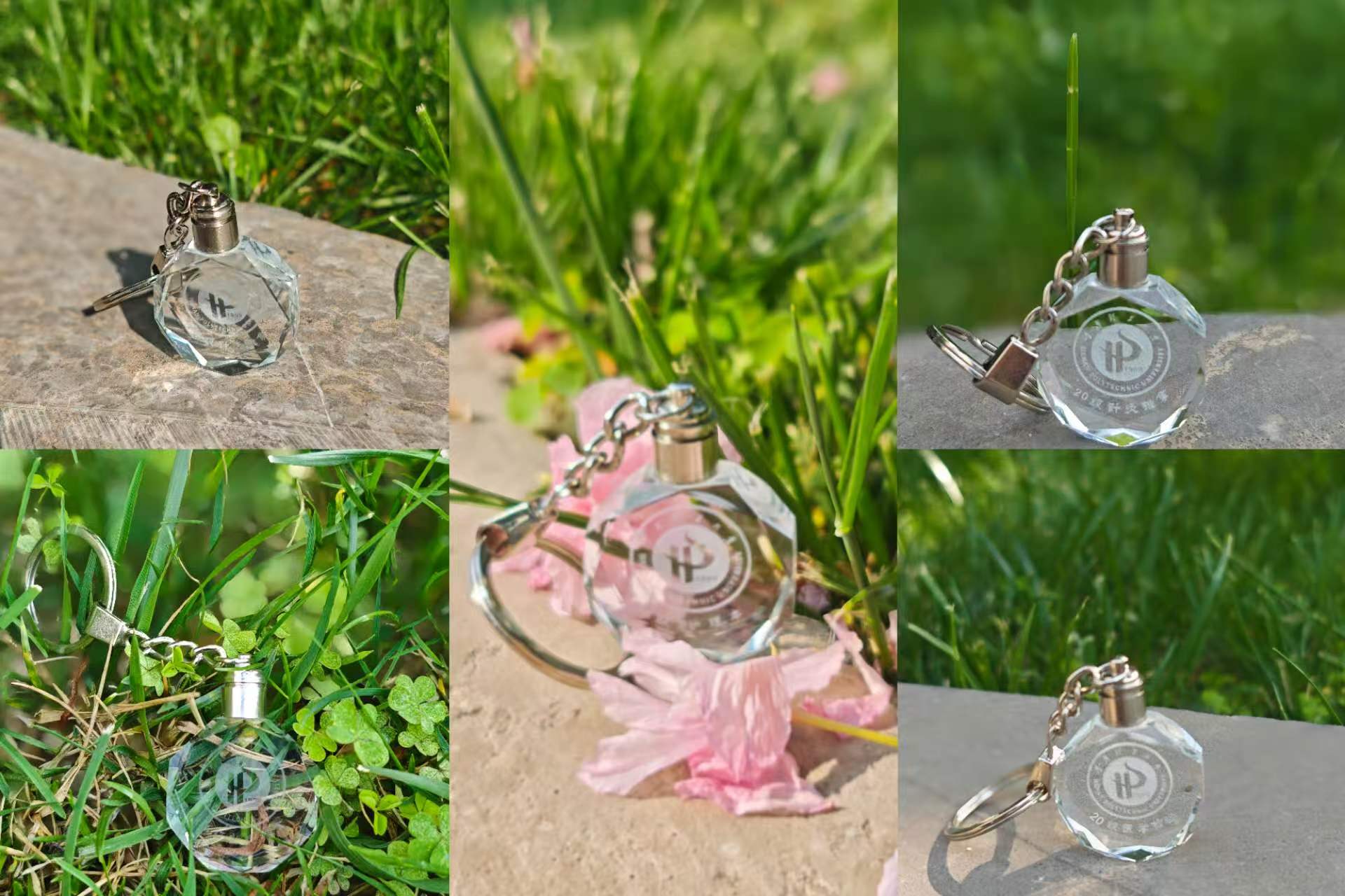 此次定制的纪念品为一枚精致的水晶钥匙扣,设计巧思与寓意深度兼具。钥匙扣以透明水晶为材质,切割面折射出璀璨光泽,恰似医学生们在医学院深耕不辍的岁月,历经打磨终成光彩。扣身镌刻着河南理工大学的校徽标识,“HP”字样与“1909”建校年份清晰呈现,锚定专属的校园印记;下方 “21级药学本”、“20级针灸推拿"等定制文字,精准对应毕业生的专业与年级,成为独属于他们的青春注脚。水晶材质通透纯净,既象征着医者仁心的纯粹赤诚,也寓意着学子们未来从医之路的光明坦荡,每一处细节都凝聚着学院对毕业生的美好祝愿。