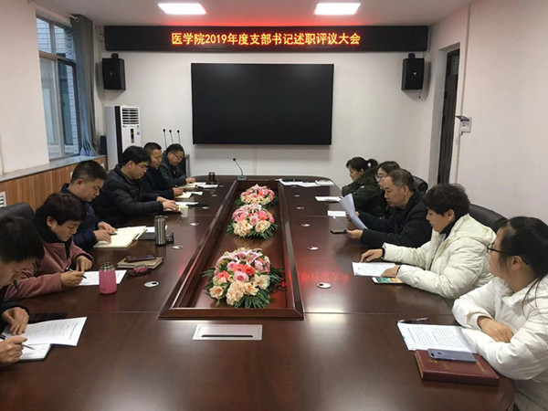 为深入学习贯彻习近平新时代中国特色社会主义思想,不断强化以党的建设为根本任务的基层基础工作,发挥基层党组织的战斗堡垒作用,12月24日下午,医学院在223会议室召开2019年度支部书记述职评议大会。学院党委委员、各党支部书记、党员代表参加了此次大会,会议由党委书记余本胜主持。