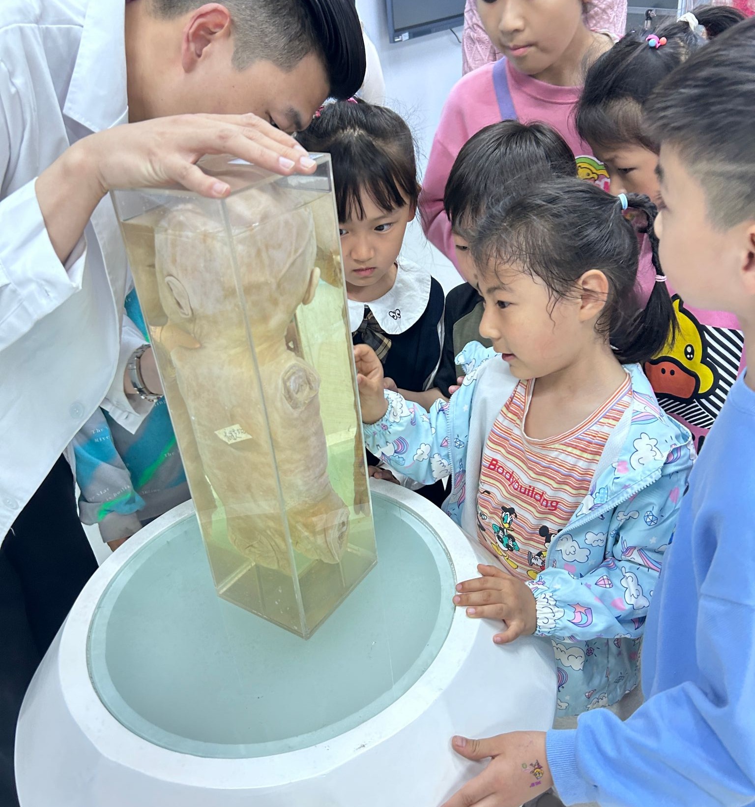 走进河南理工大学医学院生命科学馆,医学院教师带领小学生们参观了人体解剖学、组织胚胎学、病理学、人体塑化、人体铸型等标本展区,从生命的起源到生命的发展再至生命的奥秘。小朋友及家长都表现出浓厚的兴趣,他们认真聆听,积极提问,不仅学习了科学知识,同时激发了对于科学探索的热情和对生命奥秘的敬畏之心。